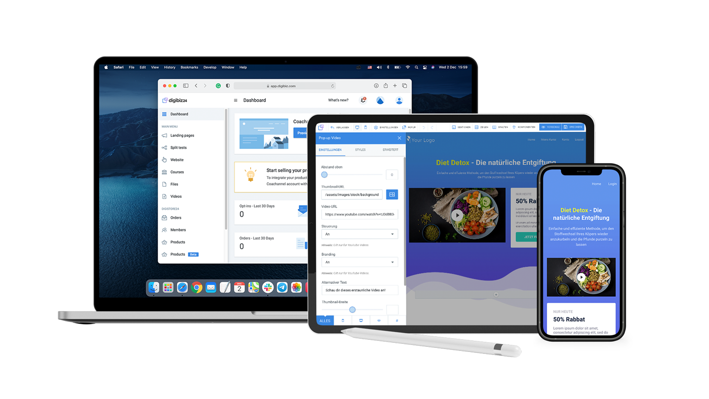 Wie viel kostet es dich, deine Website oder Mitgliederseite mühsam selbst zu erstellen? Wie anstrengend ist es, viele verschiedene Tools miteinander zu verbinden oder von Entwicklern, Designern und Agenturen abhängig zu sein? Die falsche Technologie kann dich viel kosten: Zeit, Geld und vor allem wertvolle Kunden. Mit Digibiz24 bekommst du eine All-in-One-Software, mit der du als Unternehmer mehr Zeit gewinnst und nachhaltig mehr verdienst, indem du deinen Kunden ein Top-Nutzererlebnis bietest.