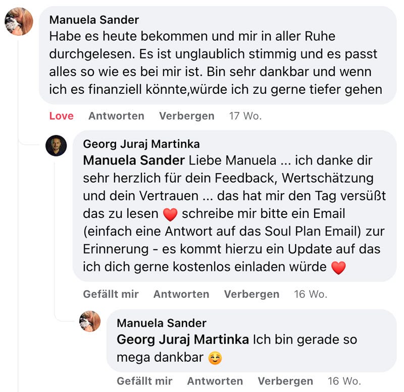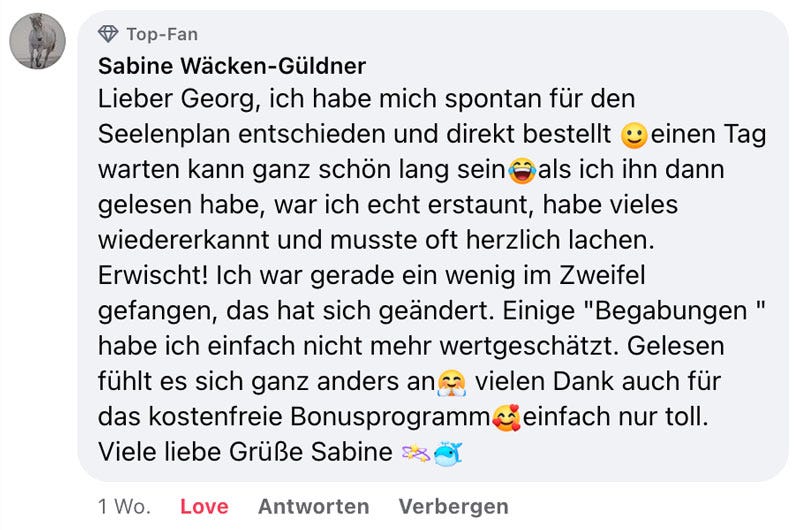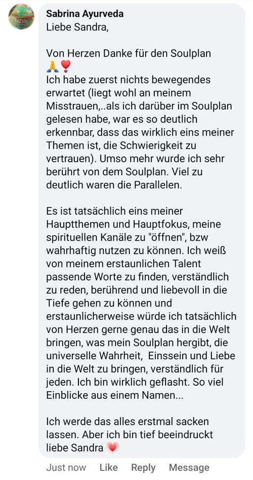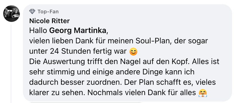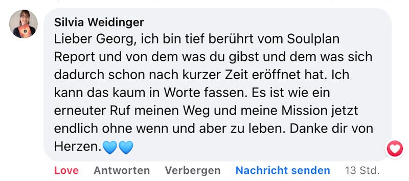 Schicke uns auch dein Feedback an soulplan@me.jetzt - wir lesen alle! Bitte schreibe auch dazu, ob du mit der Veröffentlichung einverstanden bist - mit vollem Namen, oder gekürzt. Danke! ❤️