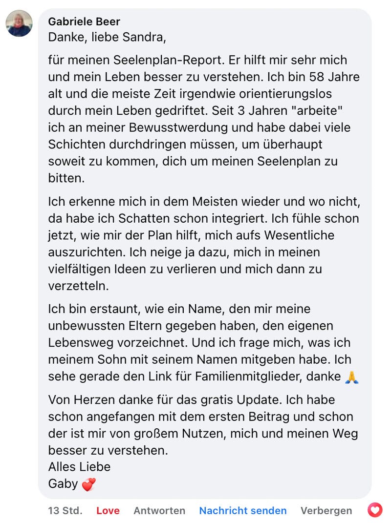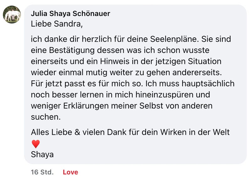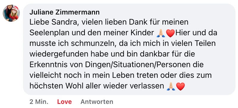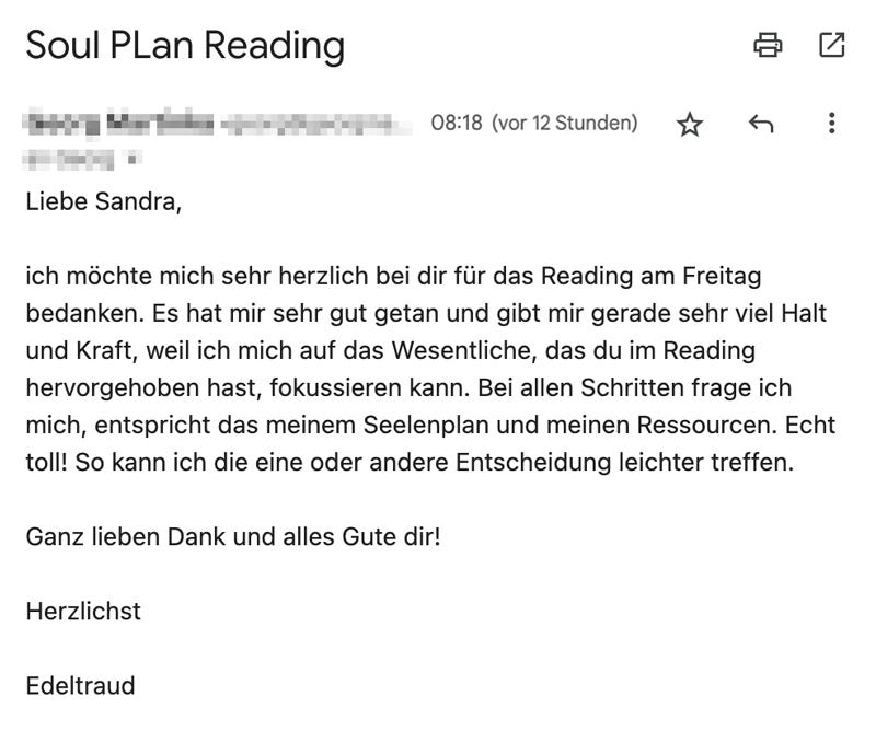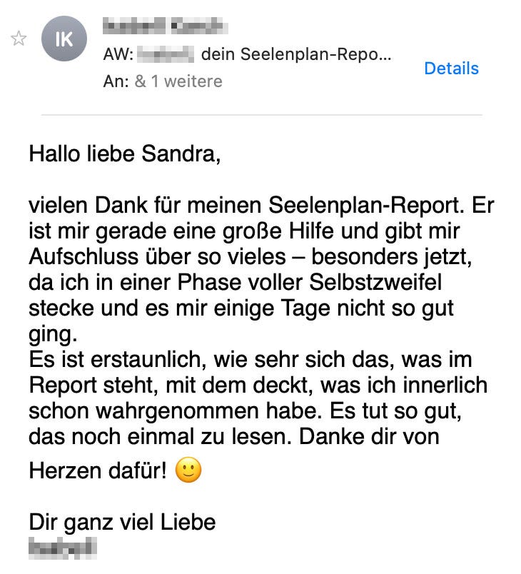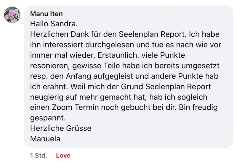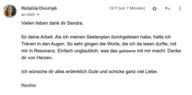 Dein Soul Plan Report wird nach Zahlung binnen 24h von Sandra persönlich erstellt und an die Email Adresse mit der gekauft wurde verschickt.