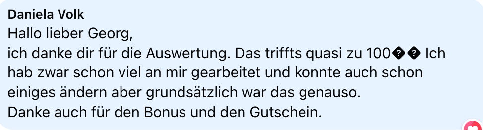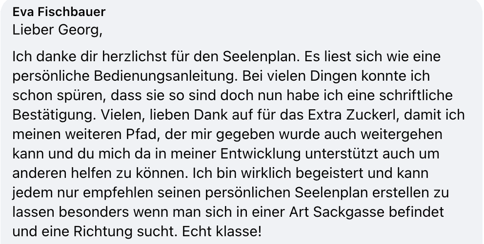 Rechtlicher Hinweis: Ich, dieser Report bzw. ein eventuelles späteres Reading stellen KEINE medizinische Beratung dar. Ich bin kein Mediziner und behaupte auch nicht, einer zu sein. Alle angebotenen Produkte und Inhalte, hier oder auf unseren Webseiten, sind KEIN Ersatz für eine professionelle medizinische Beratung, Diagnose oder Behandlung. Die Informationen, die ich gebe, sind generell nicht als professionelle Beratung in Bereichen wie Medizin, Psychologie, Finanzen oder Recht zu verstehen. Du solltest sie also nicht als Grundlage für wichtige Entscheidungen nutzen. Wenn Kunden Erfahrungen teilen, kann natürlich nicht garantiert werden, dass es bei dir genauso sein wird. Soul Plan ist eine Handelsmarke von Holistic Healing College. Es werden von uns ausschließlich Angebote und/oder Dienstleistungen von offiziell zertifizierten Soul Plan Practitionern angeboten.